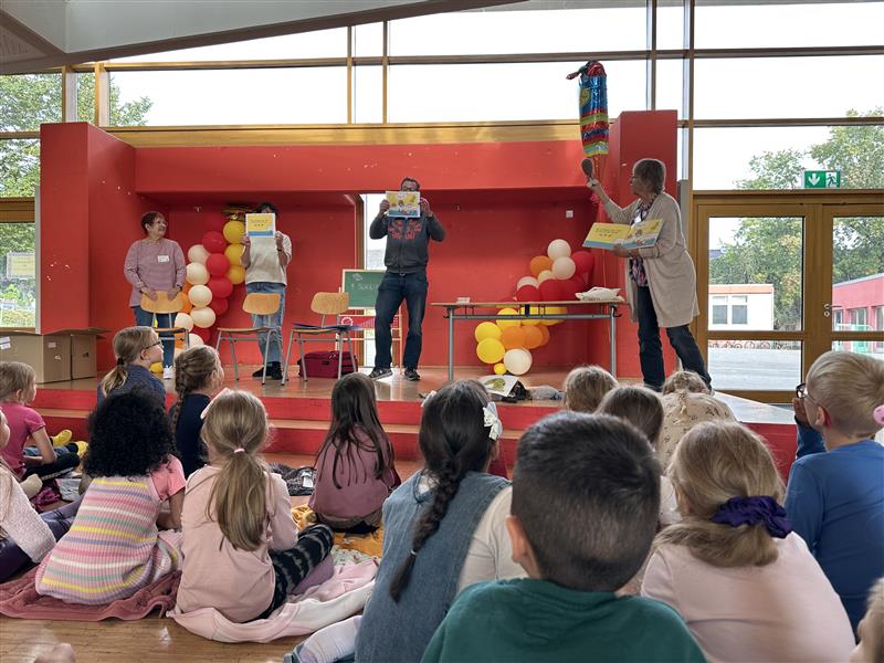 DatumWie jedes Jahr kamen auch dieses Jahr wieder die Lesefreunde Hürth zu Besuch zu unseren frisch eingeschulten Kindern. Alle ersten Klassen waren eingeladen, sich im Forum unserer Schule eine tolle Geschichte vorlesen zu lassen! Es wurde viel gestaunt und auch gelacht, und am Ende gab es sogar noch für alle eine Geschenktüte mit tollen Geschenken für jedes Kind! Sogar ein richtiges Buch war mit dabei! Vielen Dank liebe Lesefreunde!